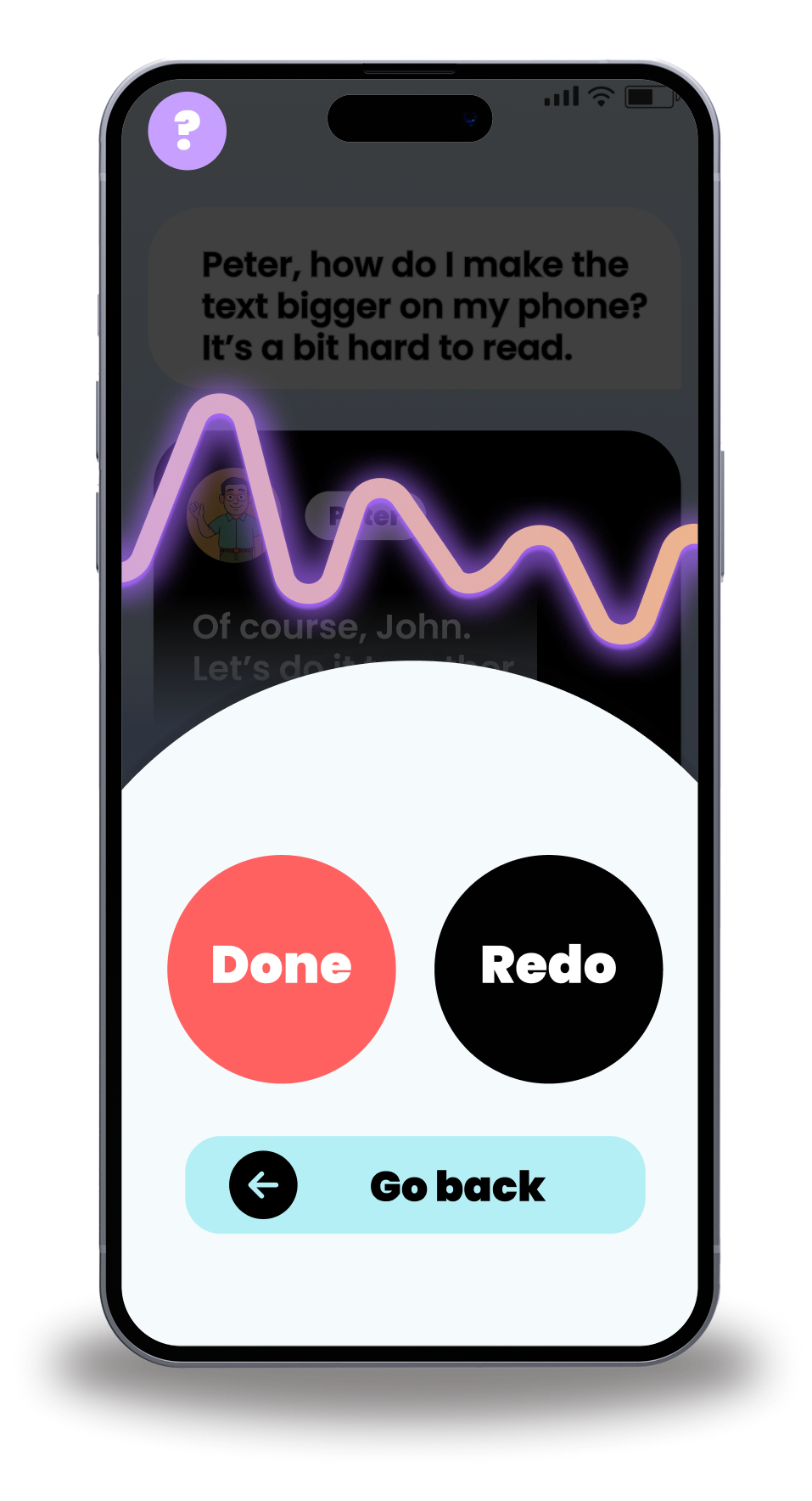 Peter lets you speak naturally, just like you would to a friend. Ask anything, in your own words, and get clear answers spoken back to you – calmly, simply, and whenever you need them.