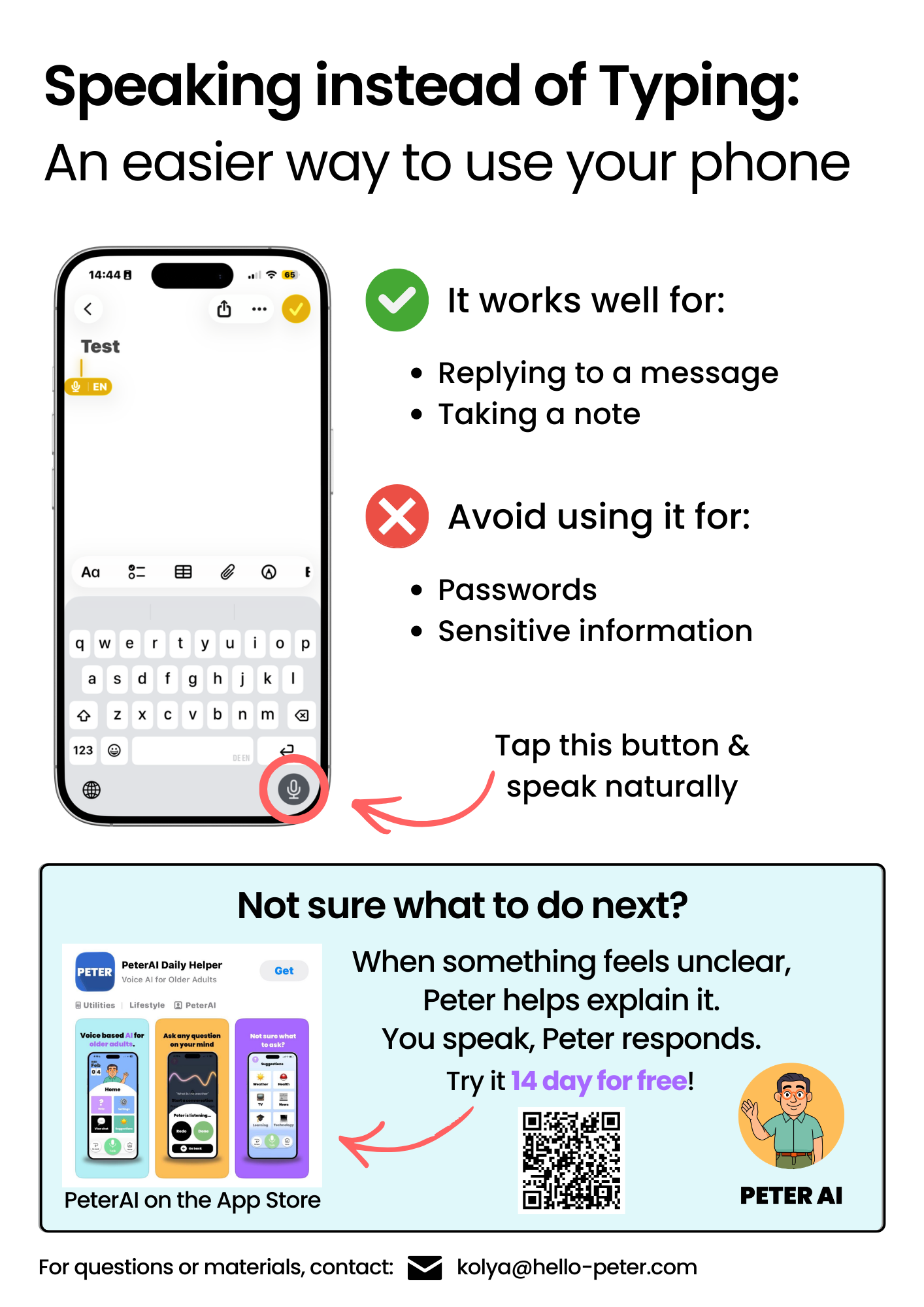 A short handout is available if you’d like to revisit the main ideas from this seminar or share them with a family member or caregiver. You can download it and review it digitally, or you can print it out and put it on your desk, so you can revisit the lessons anytime. You can find this handout below this description section as a PDF. If you want, you can also write us an email, and we will send it to you. Please contact peter@hello-peter.com for this.